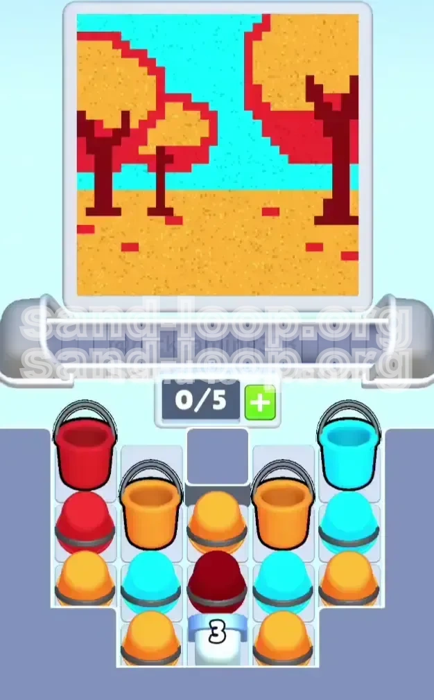 Your top priority is to establish the Cyan sky immediately. Do not be distracted by the large Sand area. If the Cyan meter is not rising steadily within the first 15 seconds, you will inevitably hit a wall later. The Cyan sky acts as the time-keeper for the level. If it lags behind, the complexity of the remaining tree details will compound the stress. Your goal is to get Cyan to the 40-50% mark before you enter the mid-game micro-management phase. Treat Cyan as your foundation; without it, the rest of the level collapses.