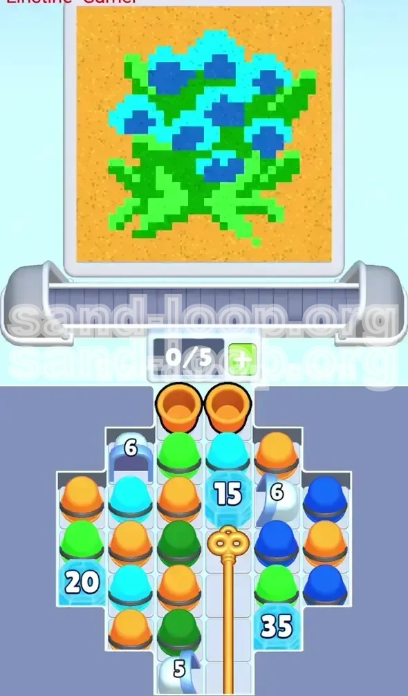 Welcome to the definitive walkthrough for Sand Loop Level 111, commonly known as the "Blue Hydrangea" challenge. This stage represents a significant spike in difficulty within the puzzle mechanics, transitioning from simple color matching to complex grid management and resource prioritization. In this level, you are not just filling colors; you are managing a bottlenecked supply chain behind a literal wall of ice.