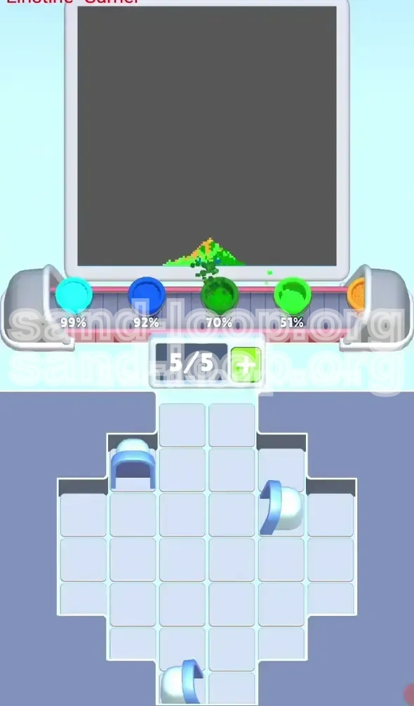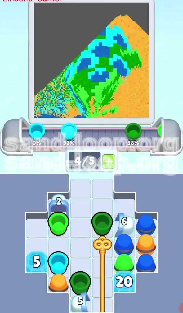 - The Pour: When the sand dispenser turns Royal Blue, pause. Look at the cup. Ensure it is the Royal Blue cup, not the Cyan cup. Pouring Royal Blue into a Cyan slot wastes a valuable resource.