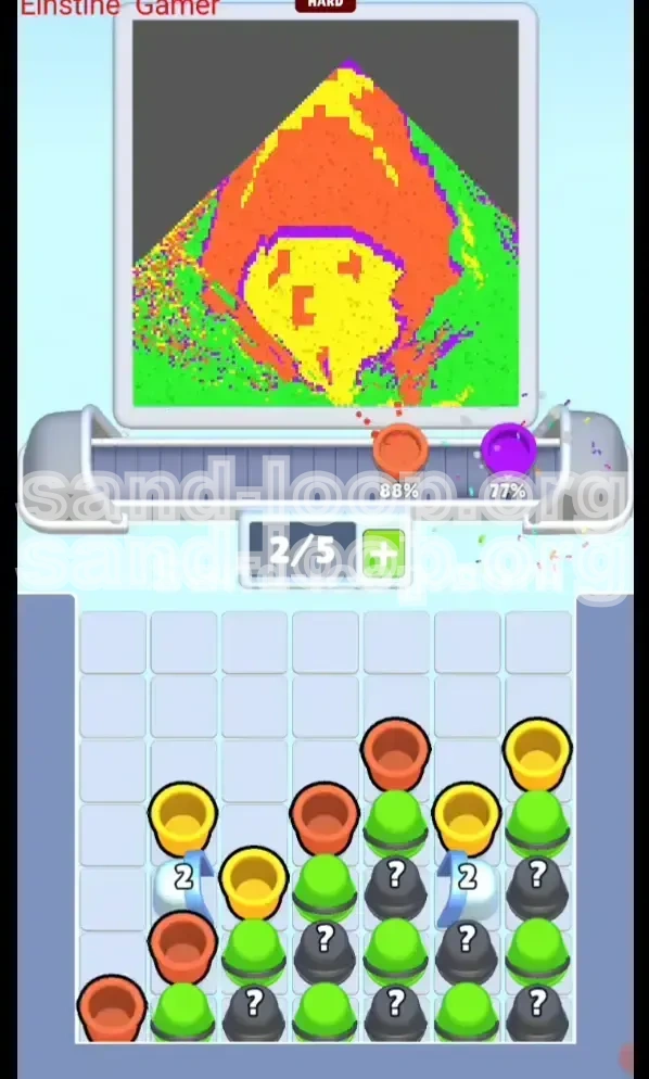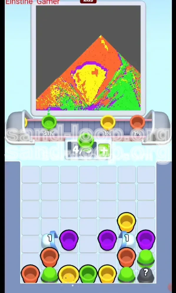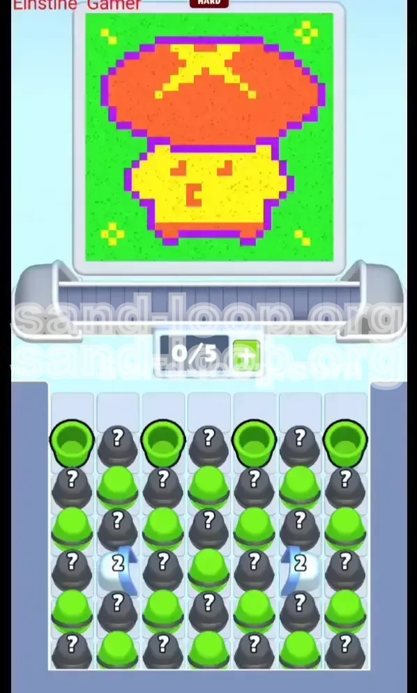 Welcome to the comprehensive walkthrough for Sand Loop Level 130. This stage, affectionately titled "The Mushroom Man" due to the pixel art objective, marks a significant jump in difficulty. Unlike previous levels where resources are visible, this stage is defined by the "Checkerboard Mystery Layout." Your primary obstacle is not the dexterity of your fingers, but the uncertainty of your inventory. You are effectively painting blind, relying on logic and probability to clear the dense grid of Mystery Cups that block your path to the colors you actually need.