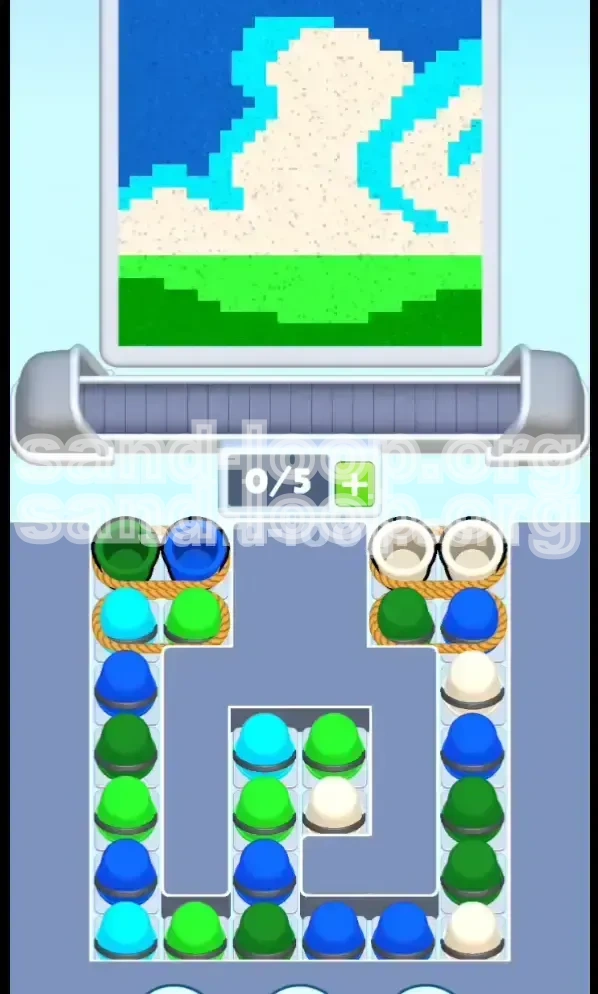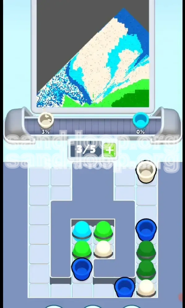 - The Sealing Rule: You cannot pour the next layer until the current layer is completely flat. A single pixel gap in the green grass will act as a drain for your beige sand, ruining the level.
