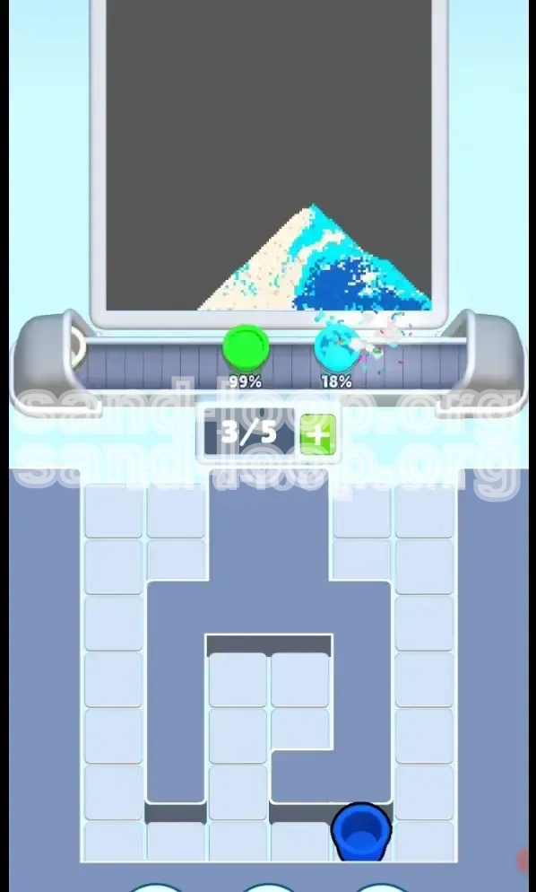 Welcome to the ultimate walkthrough for Level 153 in Sand Loop. This stage is a significant hurdle for many players, introducing advanced concepts of weight distribution and resource management. The visual aesthetic—a serene cyan-outlined mountain on a dark blue sky—hides a punishing logic puzzle underneath. In this guide, we will dissect every pixel of the strategy required to achieve a clear victory without getting stuck with a contaminated canvas.
