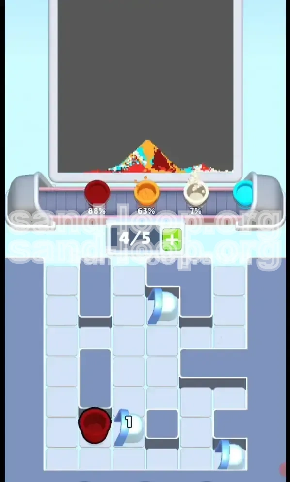 - Assess the Damage: If a few grains of Orange fall into the water zone, immediately tap Blue cups. The heavy Blue sand will push the lighter Orange sand up and out of the foundation area.