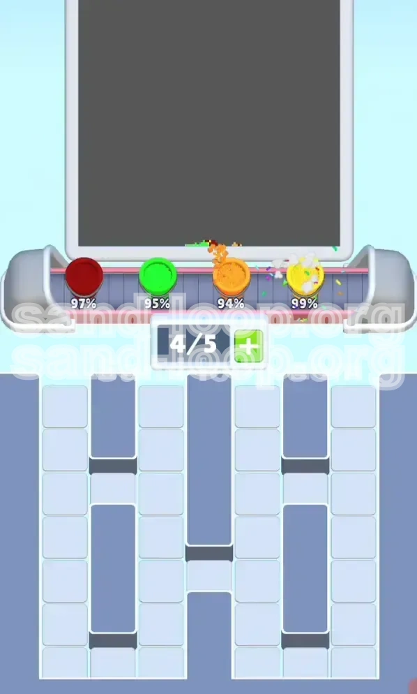 - Tactic: "Pre-loading." If you know the dispenser cycles Green -> Red -> Yellow -> Blue in a pattern, load the Red buckets onto the belt while the Green sand is still pouring. By the time the Green finishes and Red starts, your Red buckets are already in position.