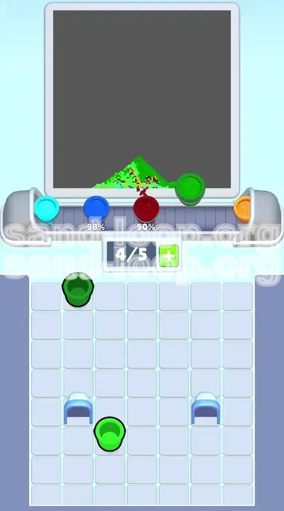 With only 5 slots available on your conveyor belt, every slot represents 20% of your active processing capacity. Filling all 5 slots with the same color is a strategic error known as "Mono-loading." Instead, you should aim for a "Balanced Load" configuration. Ideally, your belt should never have more than 2 Green cups on it at once. The other 3 slots should be rotating through the rare colors. This keeps your input rate balanced with the output requirements. If you have 5 Green cups queued, you are forcing the game to accept Green paint at 100% efficiency, which causes the Green meter to skyrocket while the other meters stagnate.