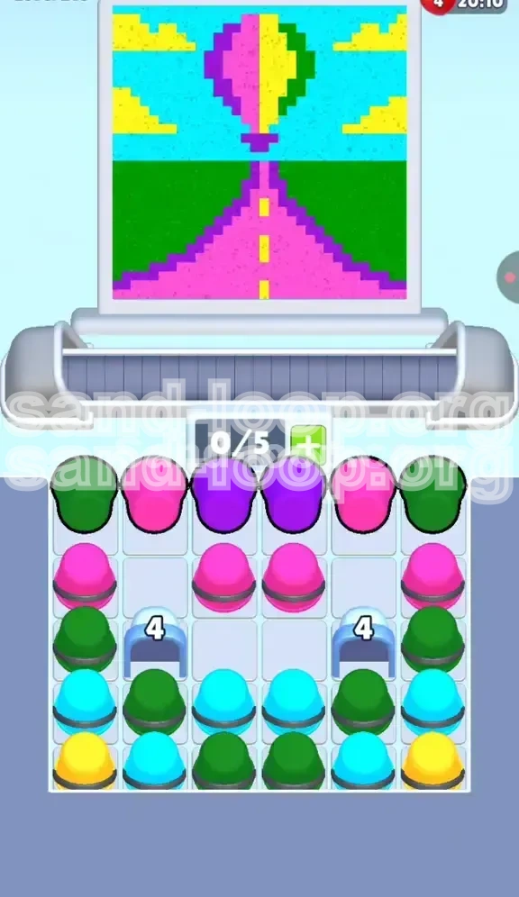 The core challenge here is Vertical Conflict. The game presents you with colors for the top of the scene (the balloon) before you have access to the colors needed for the bottom (the road). Specifically, you are presented with Purple cups almost immediately, but using them too early will contaminate the Pink road below. Furthermore, Ice Blocks act as physical barriers in your tray, locking away essential Sky Blue and Green paints until you clear a specific number of cups. This guide will break down exactly how to juggle these mechanics to achieve a 100% clear.