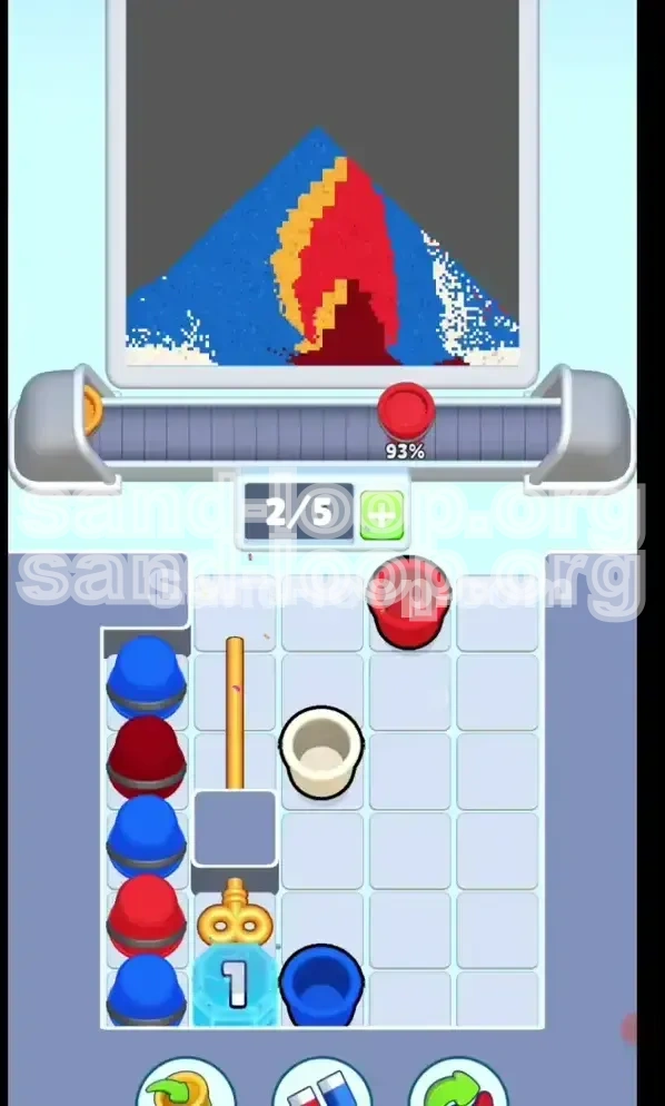 • "Blue Bleed": If Blue sand falls into the Red zone, don't panic. Immediately load a Bright Red cup and pour it directly over the "contaminated" area. Red is visually dominant and will cover the Blue if you pile it high enough.