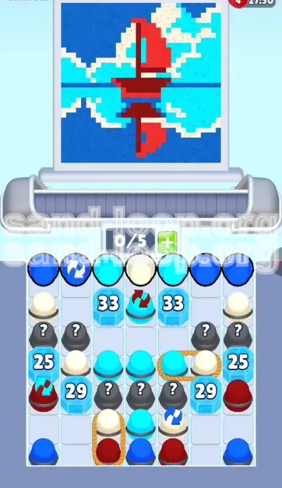 Welcome to the advanced guide for Sand Loop Level 312. This stage is a deceptive blend of aesthetic beauty and mechanical frustration. While the target image—a majestic Red Sailboat reflecting on calm blue waters—appeals to the artist in you, the gameplay mechanics are purely tactical.