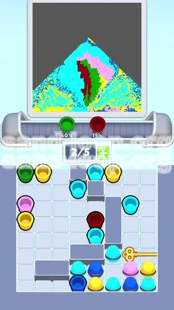 - Filling the Sky Too Early: If you fill the sky to 100% before unlocking the keys, you will have nowhere to put the excess Yellow/Cyan paint that comes from the bottom reserves. Fix: Always keep the top 10-15% of the sky empty until the very end of the level.