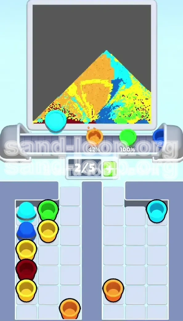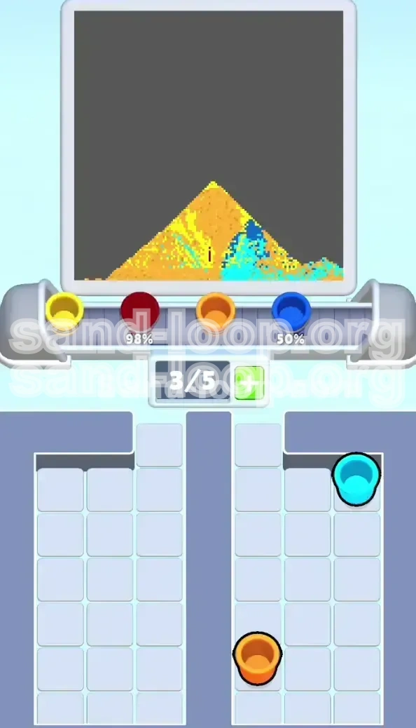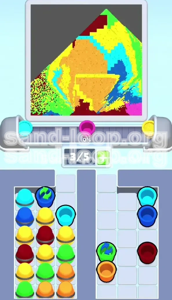 - Fix: You cannot "erase" sand in Sand Loop. You can only cover it up. If you spill Orange in the Blue zone, you must fill the rest of the Blue zone to match it. This wastes precious sand. Moral: It is better to wait 10 seconds for the dispenser to align than to try to "fix" a bad pour.
