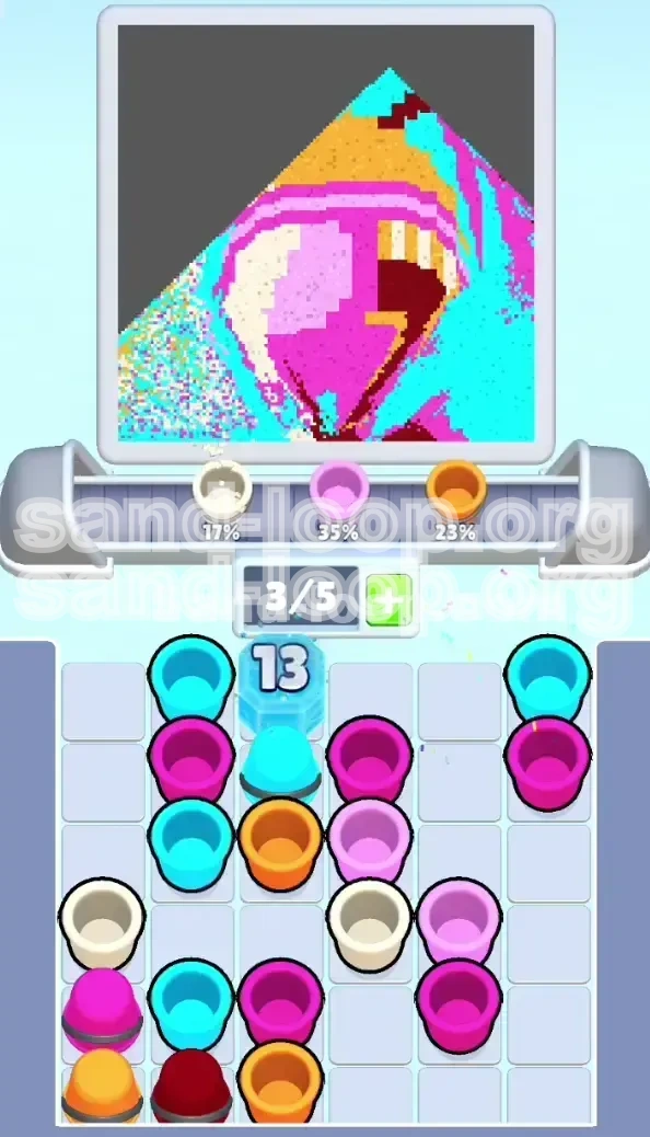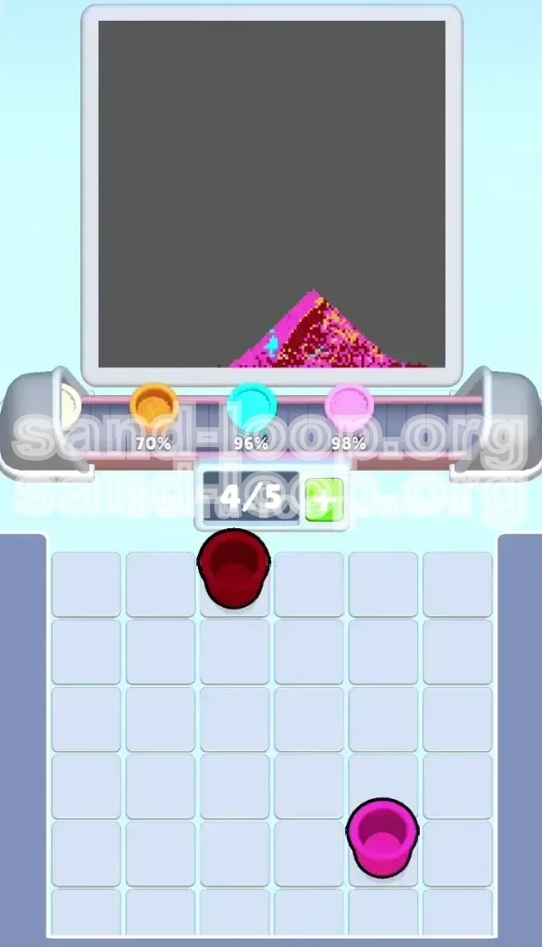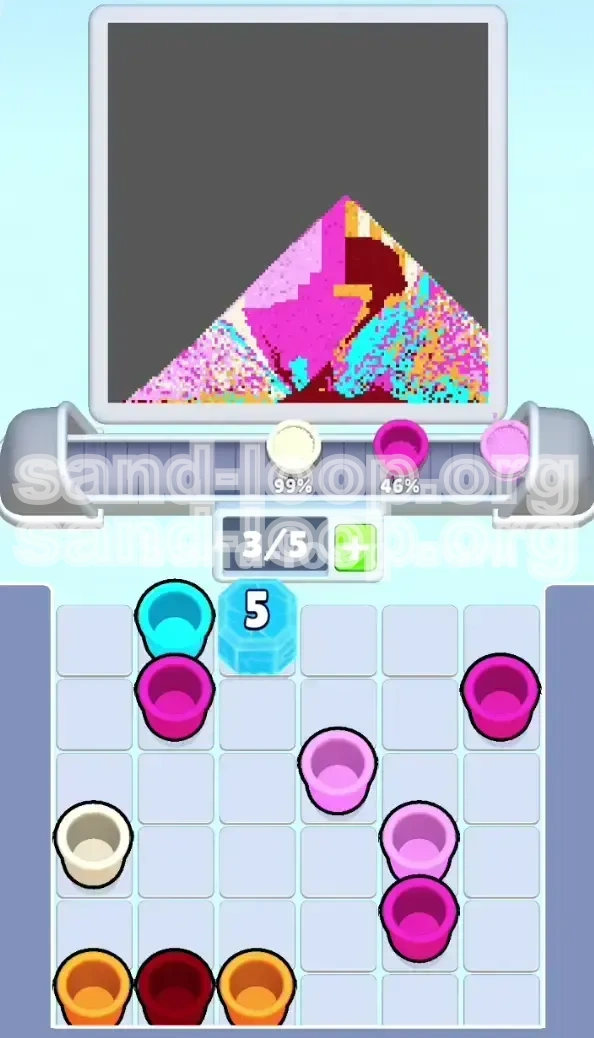 Why it fails: When the block breaks, the tray shifts. If your belt is full of Magenta, you cannot grab the newly unlocked Cyan cups. You are forced to waste the Magenta cups elsewhere, often leading to messy over-painting.