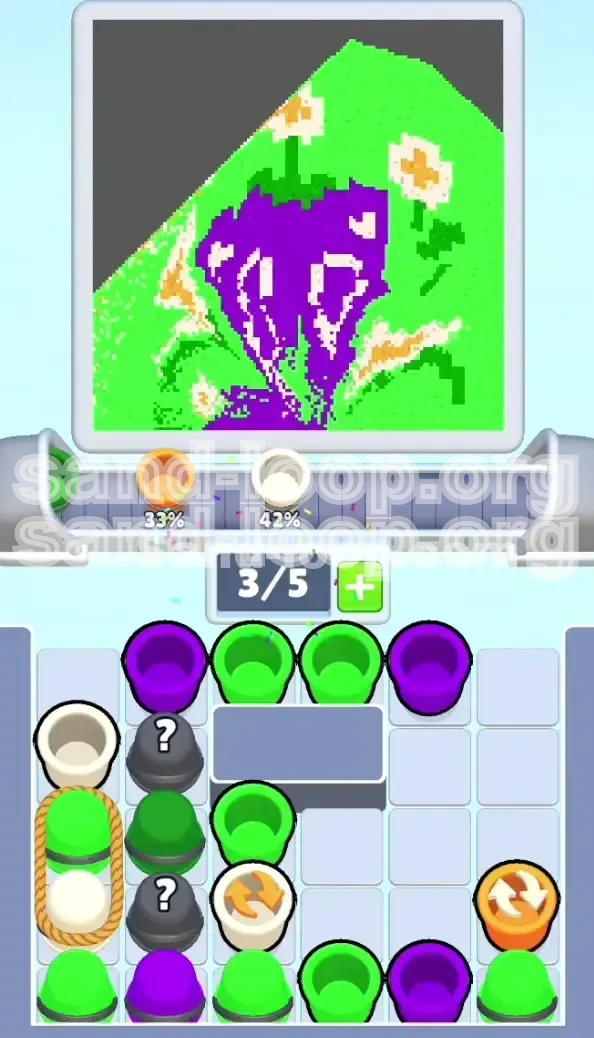 - The Risk: If you tap a Mystery bucket with a full queue of Purple, and it reveals an Orange, that Orange bucket will block your queue, preventing you from pouring the Purple you need.