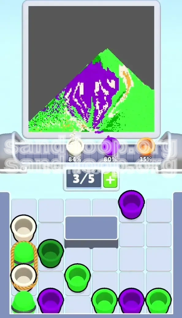 - The Queue Limitation: You are restricted to a 5-slot conveyor belt. This means you cannot load up large quantities of sand indiscriminately.