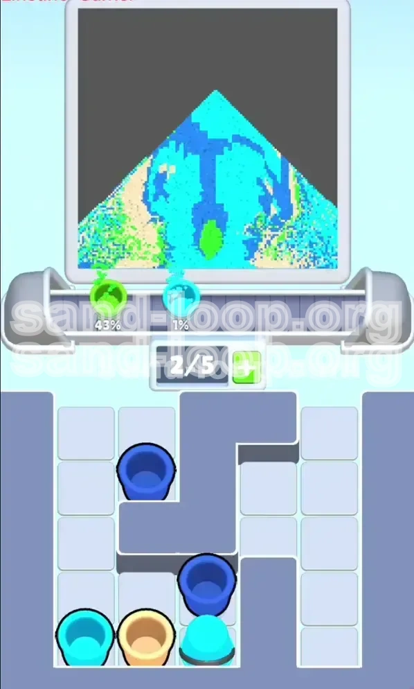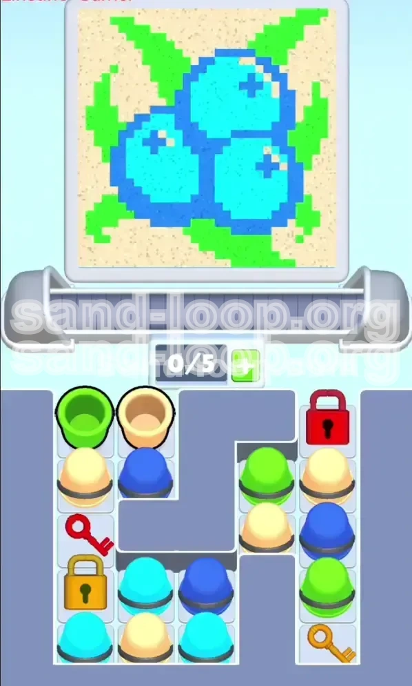 Welcome to the ultimate guide for conquering Sand Loop Level 42. This stage is a significant difficulty spike, designed to test your spatial reasoning and inventory management skills rather than just your reflexes. In this level, you will be painting a "Blueberry Cluster" pixel art, but the challenge lies in a complex locking mechanism known as the Cross-Column Lockout. One wrong move at the start can clog your conveyor belt, making it impossible to finish the painting.
