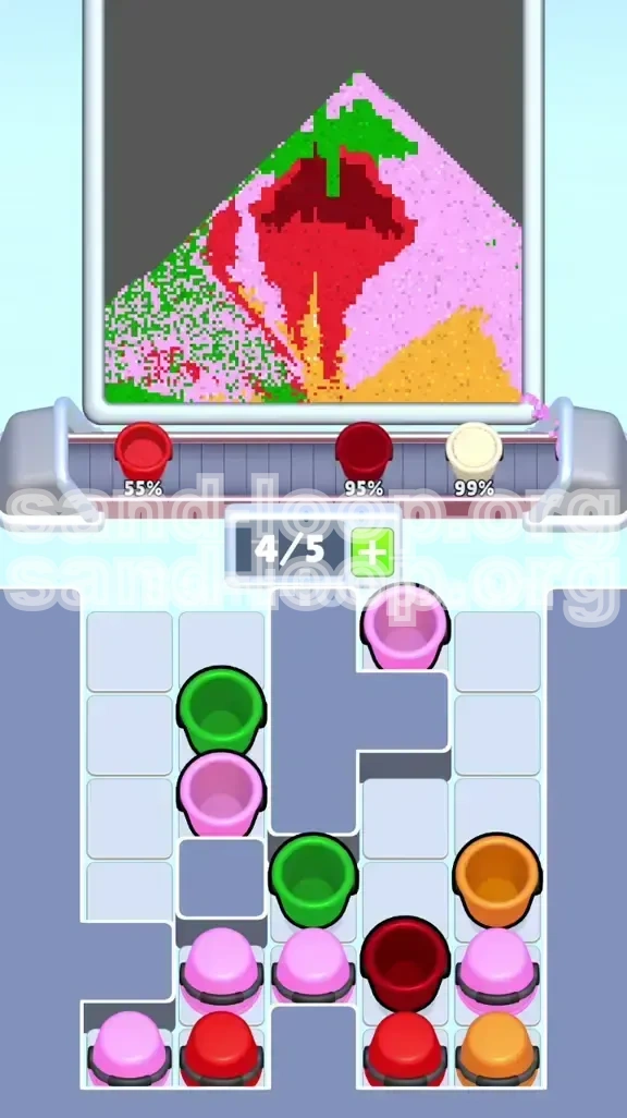 - High Volume Colors (The Fillers): Light Pink. This color dominates the upper background. You will need to reserve late-game energy to process a massive amount of this sand.