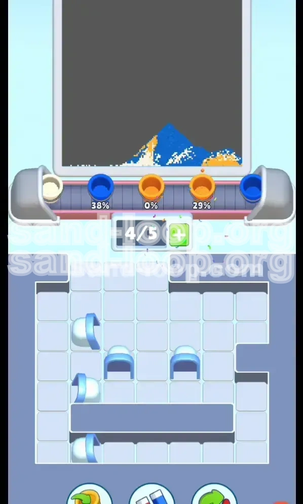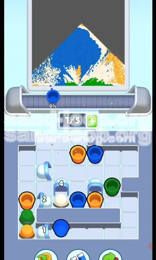 Welcome to the ultimate strategy guide for Sand Loop Level 70. This level marks a significant shift in gameplay mechanics, moving away from simple fluid dynamics and into the realm of logic puzzles and inventory management. In this stage, titled "The Snowy Mountain," you are not just an artist; you are an excavator. The primary challenge is not the accuracy of your pouring, but your ability to manage the strict 5-slot conveyor belt limit while simultaneously mining for buried resources.