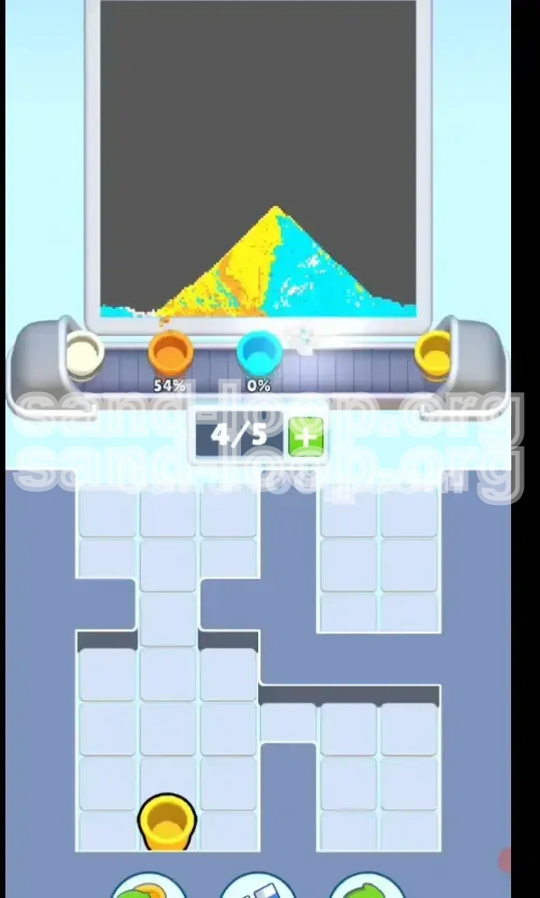 - Conservation is Key: You have exactly enough Yellow and Orange sand to complete the pyramids with zero margin for error. Spilling sand on the wrong area will force a restart.