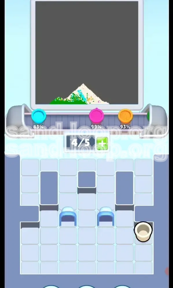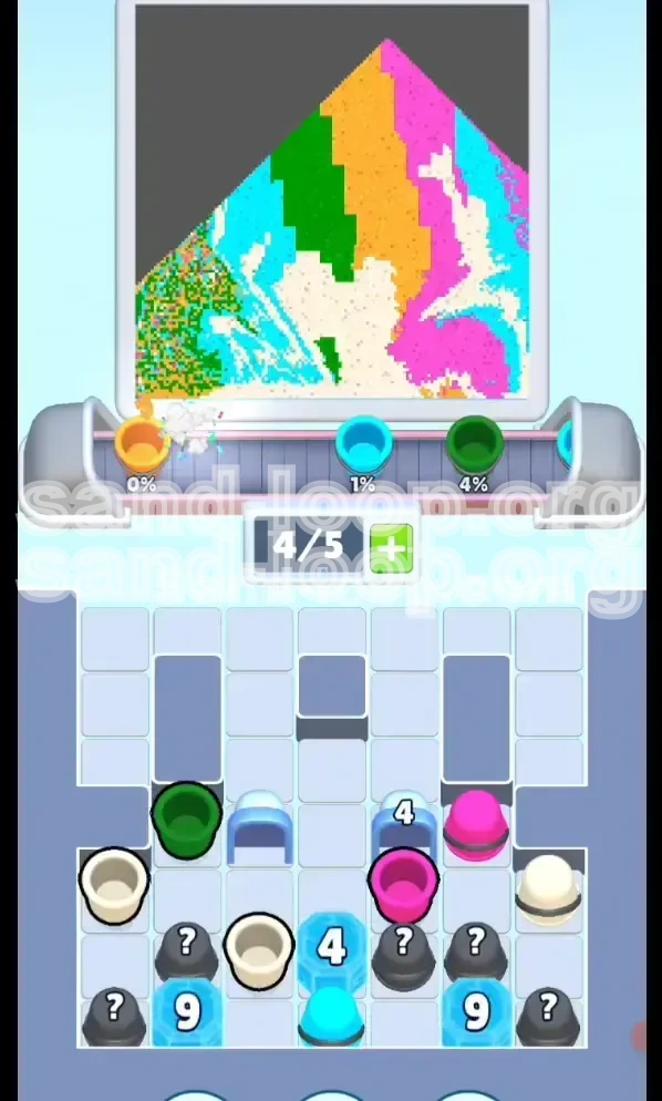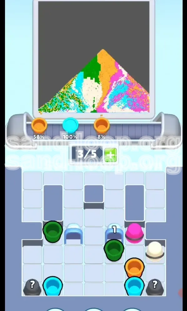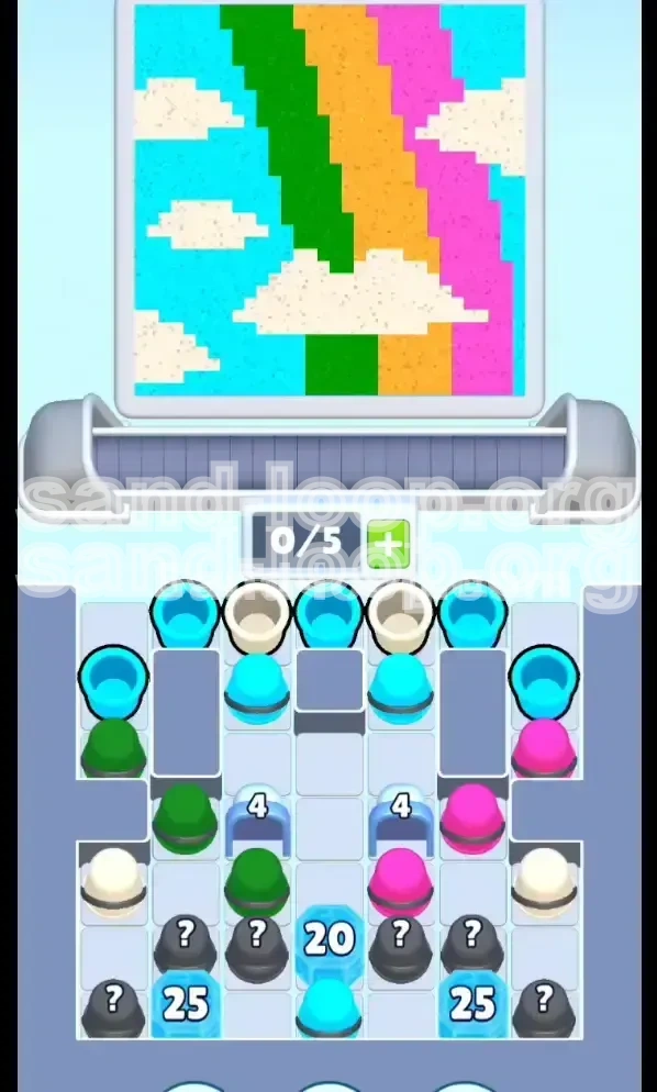 The core difficulty in Level 89 lies in the physics of the sand. Unlike static puzzles, sand forms pyramids. If you attempt to pour the middle-layer colors (Green, Orange, Pink) before establishing a solid foundation, they will simply slide down the slopes and contaminate the white clouds at the bottom. This guide breaks down the exact sequence to dominate the "Rainbow Sky" without getting stuck in an endless loop of unfixable mistakes.